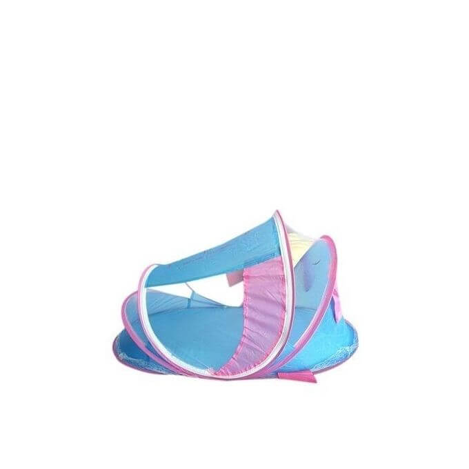 Lit pliable avec moustiquaire transportable – Bleu/Rose